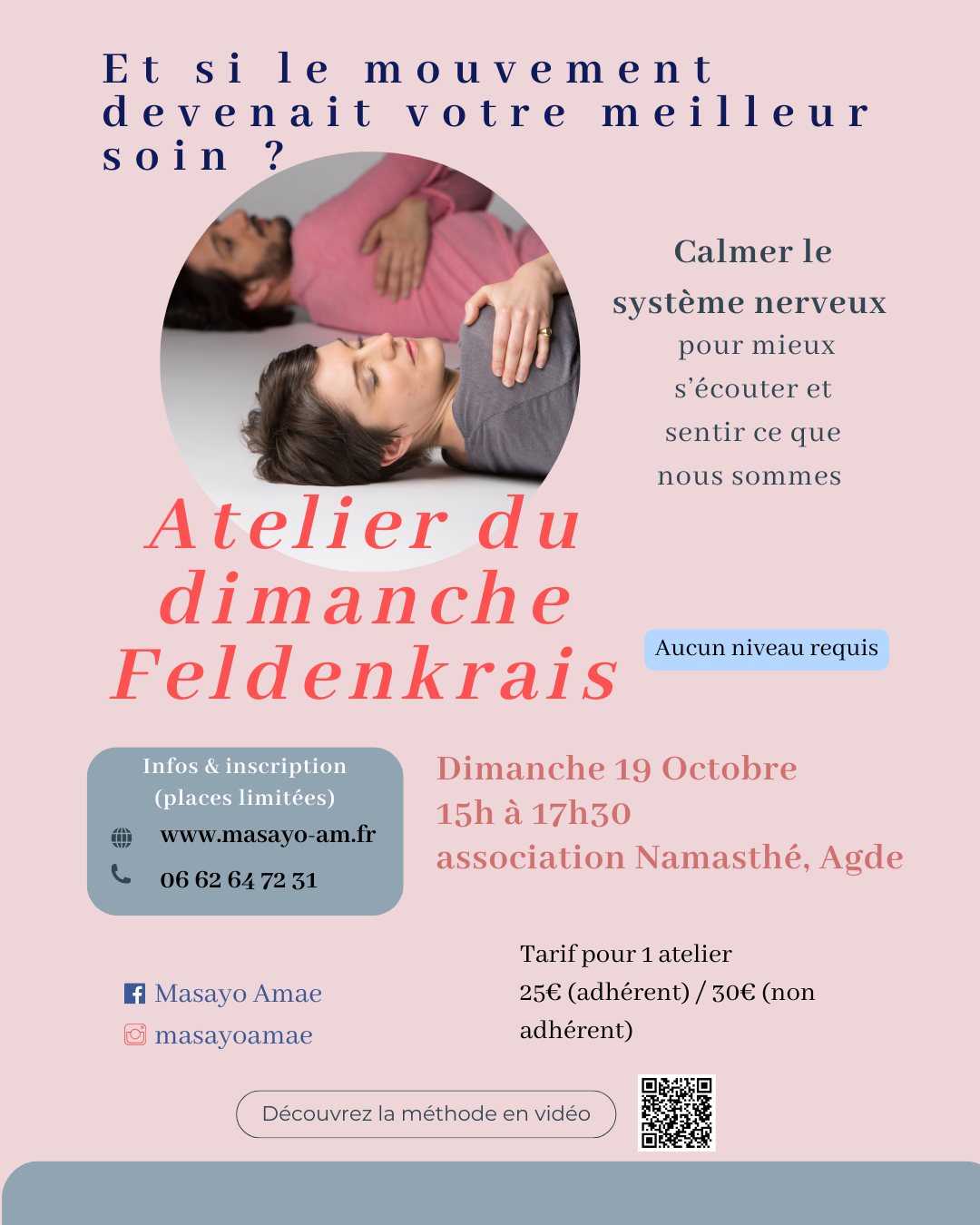 La méditation sera guidée par Françoise et le Feldenkrais sera guidé par Masayo.